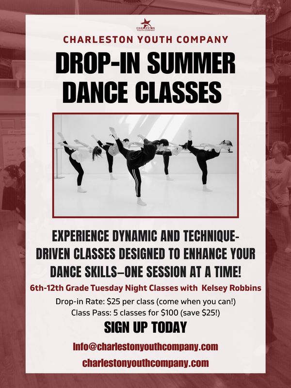 The Charleston Youth Company presents our Summer Dance Camp - a one-week experience focused on technique, skill-building, and fun for dancers of all levels. Led by CYC instructor and alumna Kelsey Robbins, who holds a Bachelor of Arts in Dance Performance, this camp is a chance to train, explore, and express yourself through movement.